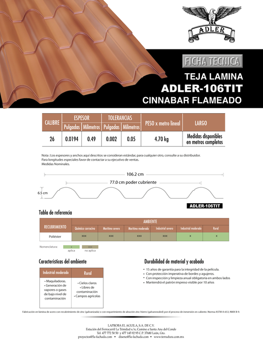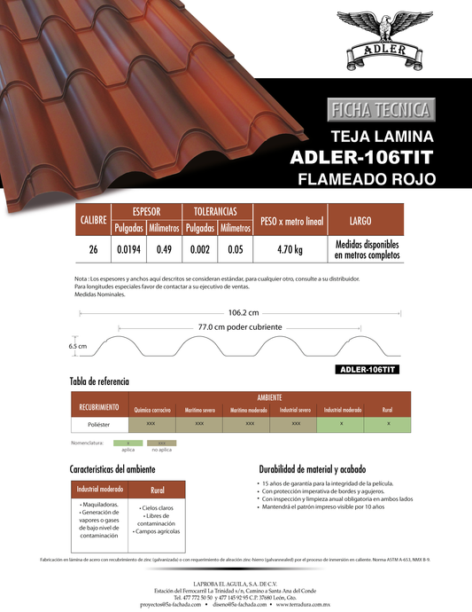 Flameado rojo oxido teja de láminaProveedor:TerraduraPrecio habitual A partir de $ 207.36Precio habitualPrecio unitario / por-