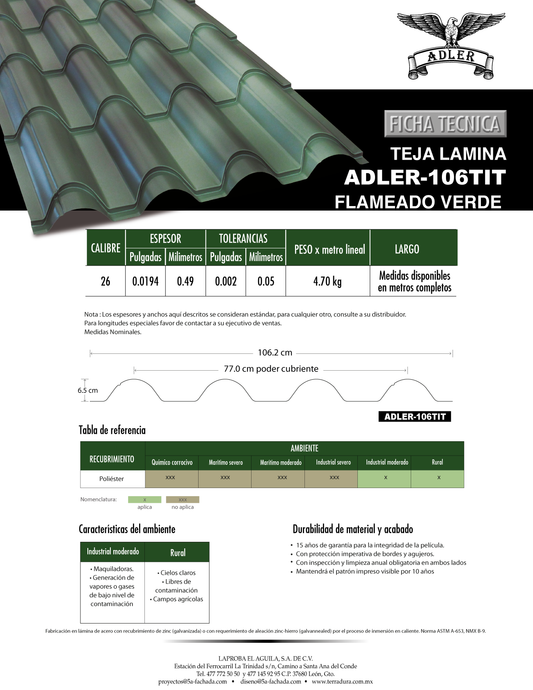 Flameado verde Teja de láminaProveedor:TerraduraPrecio habitual A partir de $ 207.36Precio habitualPrecio unitario / por-