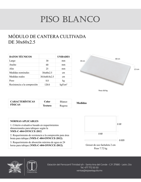 Piso BlancoProveedor:TerraduraPrecio habitual $ 45.27Precio habitualPrecio unitario / por